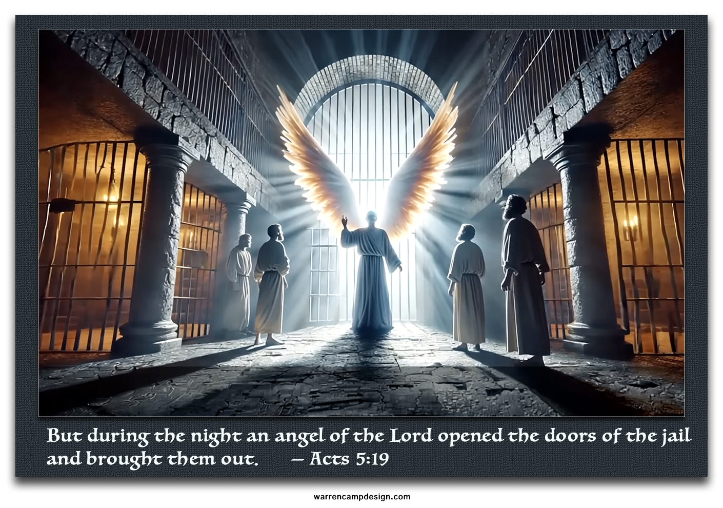 But something had happened of which none of the Council priests or guards were aware. During the night, God had “released” the apostles whom the priests had imprisoned. An “angel of the Lord” (enlarge image) had let them go at night, without the guards’ knowledge of it. Until the apostles’ jail-house doors were opened, no one had a clue that the prisoners were gone.