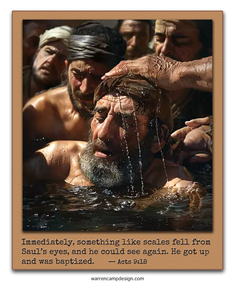 With his sight restored, and with a joyful sense of the Spirit flooding his heart, Saul didn't delay taking the final step that Ananias promoted. Luke presents Saul’s baptism as the immediate, natural response to a work of grace that has already unfolded in stages. To show that he understood the urgency of pleasing the Lord, Saul underwent baptism, before he ate food to relieve his hunger (v. 18).