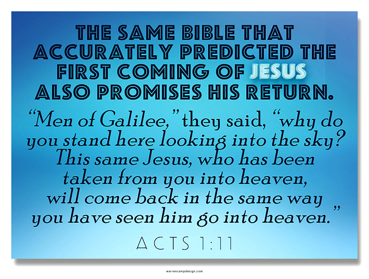 10They were looking intently up into the sky as he was going, when suddenly two men dressed in white stood beside them. 11“Men of Galilee,” they said, “why do you stand here looking into the sky? This same Jesus, who has been taken from you into heaven, will come back in the same way you have seen him go into heaven.”