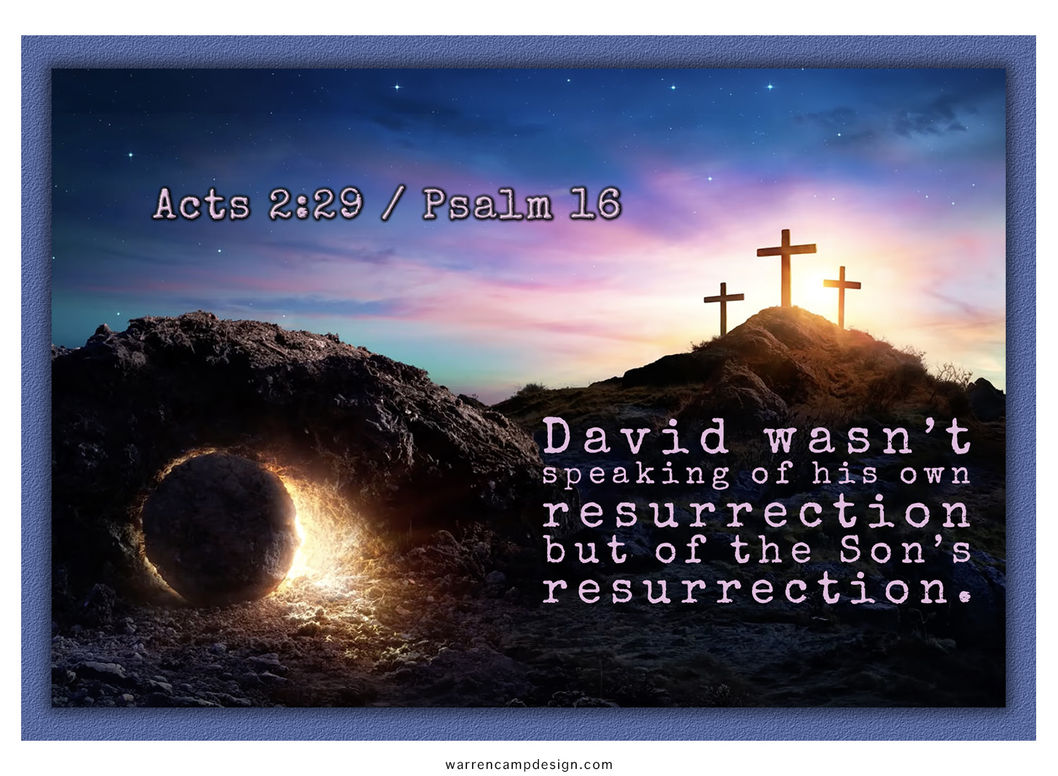 It’s difficult to overestimate the importance of Lord Jesus’ resurrection. Peter first demonstrated the necessity of Christs resurrection, then he spelled out its implications. He told this audience that it was impossible for Jesus not to be raised. As proof, in vv. 25–28, Peter turned to Psalm 16, a psalm of David. In it, David reveled in the inheritance that God had prepared for him and promised to him. What’s the basis of David’s confidence in those future blessings?