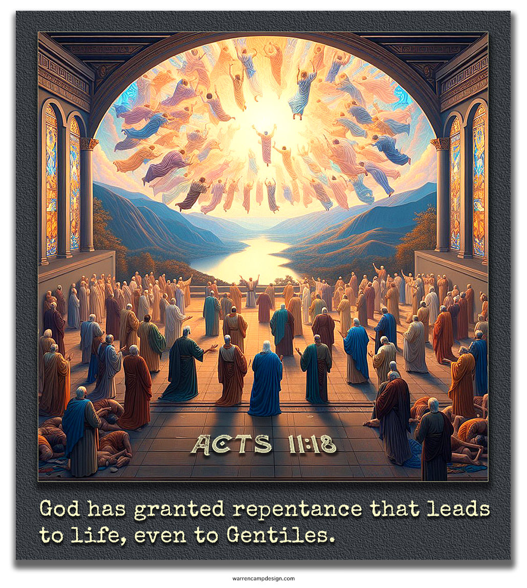 I see see v. 18 as a major turning point in Acts because it marks the Jerusalem church’s first explicit, verbal acceptance that Gentiles are fully included in God’s saving plan, albeit on the same terms as Jews. It’s the church’s first corporate confession that God himself has brought Gentiles into the covenant people by granting them the same repentance and life as Jewish believers, reshaping the church’s identity and mission from that point forward. This verse closes the Cornelius episode and prepares for the large‑scale Gentile mission (Antioch, Paul’s journeys, Acts 13–28).