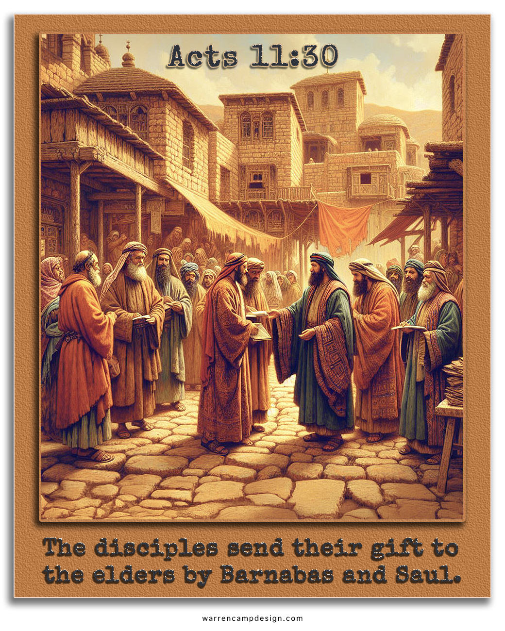 How did they send their gift? They entrusted it to Barnabas and Saul who delivered it to the elders (enlarge adjacent image). They were wise about it; Barnabas and Saul had proven themselves to be men of integrity among them; they could be trusted to deliver it safely. Barnabas and Saul were wise enough to know that this gift needed to be entrusted to the elders, who’d wisely dispense it to people in need.