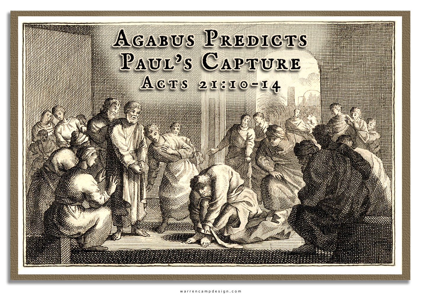 This is the same Agabus who came to Antioch to inform the saints in that church that a world-wide famine was to come upon the whole earth (11:27–29). In a dramatic fashion, similar to that of some of the Old Testament prophets, Agabus took Paul’s belt and bound his own feet and hands. He told the church that Paul would be bound by the Jews at Jerusalem and would be delivered into the hands of the non-Jews. What Agabus said was new to the Caesarean saints, but not to Paul or those traveling with him.
