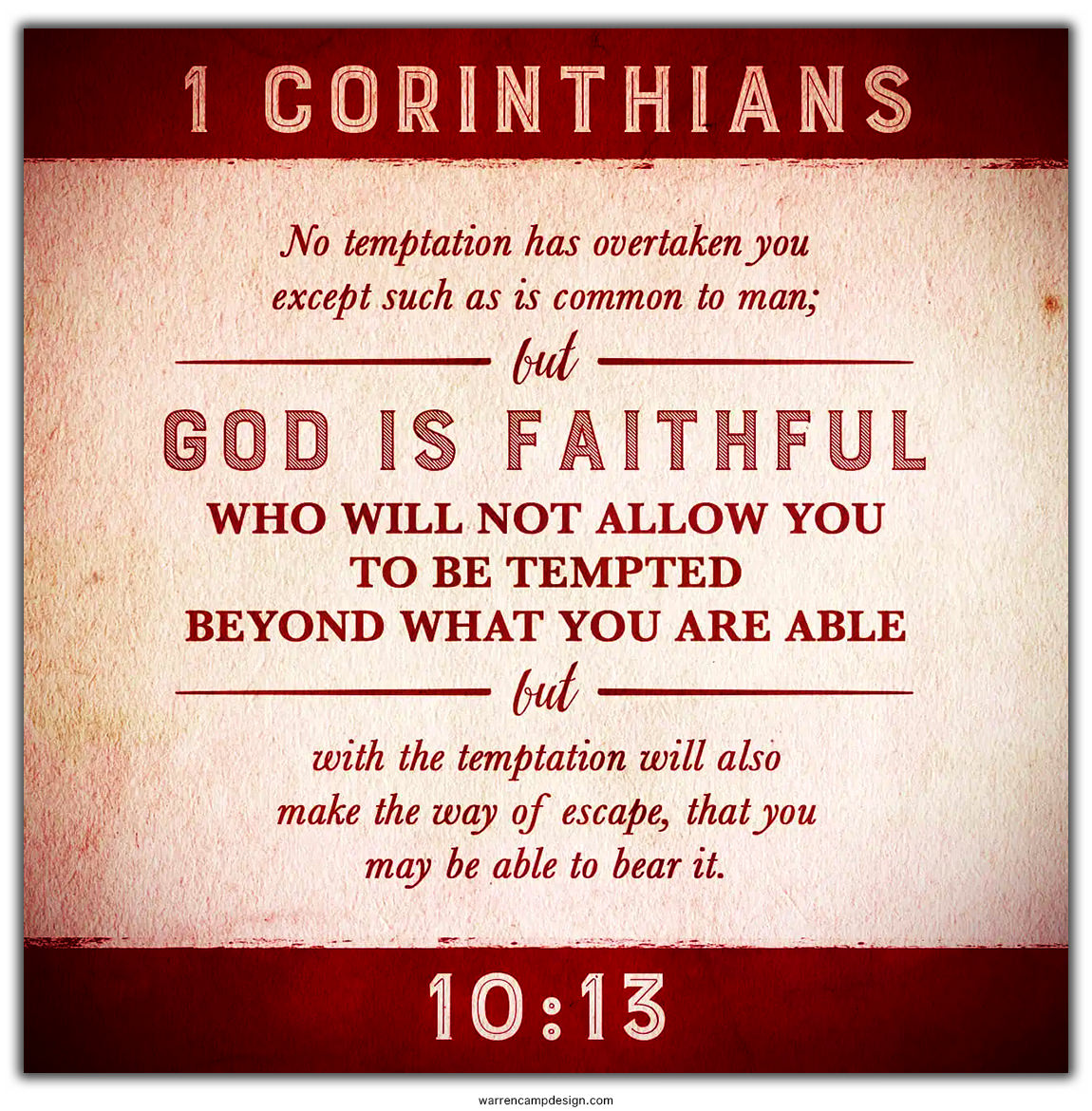 11These things happened to them as examples and were written down as warnings for us, on whom the culmination of the ages has come. 12So, if you think you are standing firm, be careful that you don't fall! 13No temptation has overtaken you except what is common to mankind. And God is faithful; he will not let you be tempted beyond what you can bear. But when you are tempted, he will also provide a way out so that you can endure it.