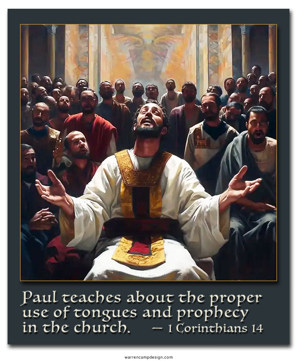 In vv. 21–25, Paul explains why spiritual maturity and self-control are so important in a corporate worship service. Citing in v. 21 a prophecy from Isaiah 28:11–12, Paul makes this point with that Old Testament quotation: If Israel wouldn’t hear the Lord through the prophets, they wouldn’t hear even when God spoke in foreign languages to them through foreign people. He clarifies in v. 22: Tongues are a sign for unbelievers while prophecy is for believers. So, the apostle asks Christians: Why put so much stress on tongues?