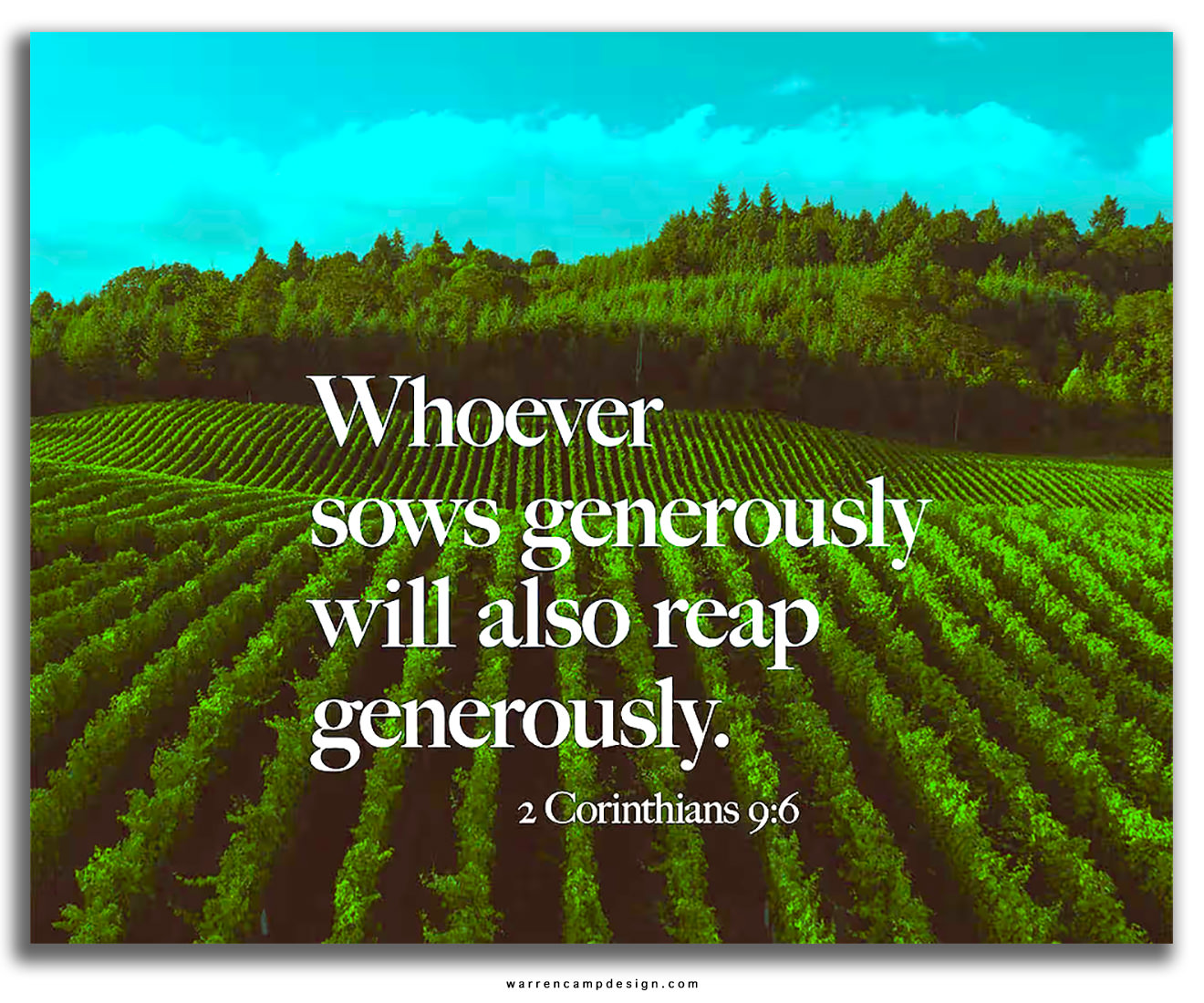 But our sown seed is not inert or lost or gone! It’ll eventually fulfill its appointed process and the farmer will have the seeds back again plus much more, which is God’s design. Our return or reaping is proportionate to our giving or sowing. If a farmer or any of us sows a small amount of seed, our return will be small. But if each of us sows or gives generously, we’ll receive or reap a bountiful harvest in return.