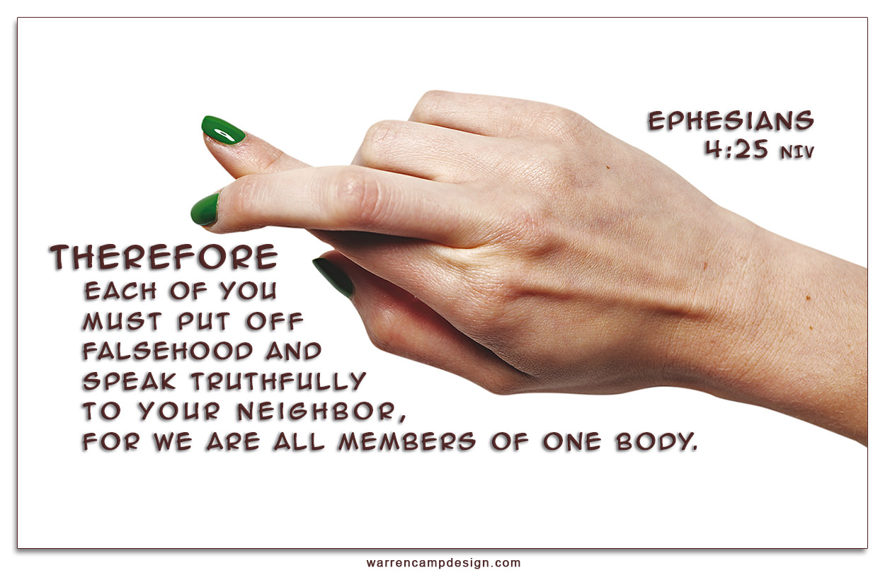 25Therefore each of you must put off falsehood and speak truthfully to your neighbor, for we are all members of one body (Ephesians 4:25 NIV).