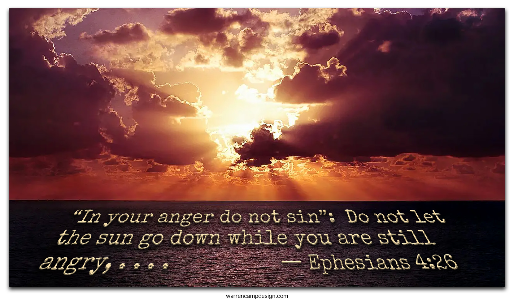 26“In your anger do not sin” [Psalm 4:4]: Do not let the sun go down while you are still angry, 27and do not give the devil a foothold (Ephesians 4:26–27 NIV).
