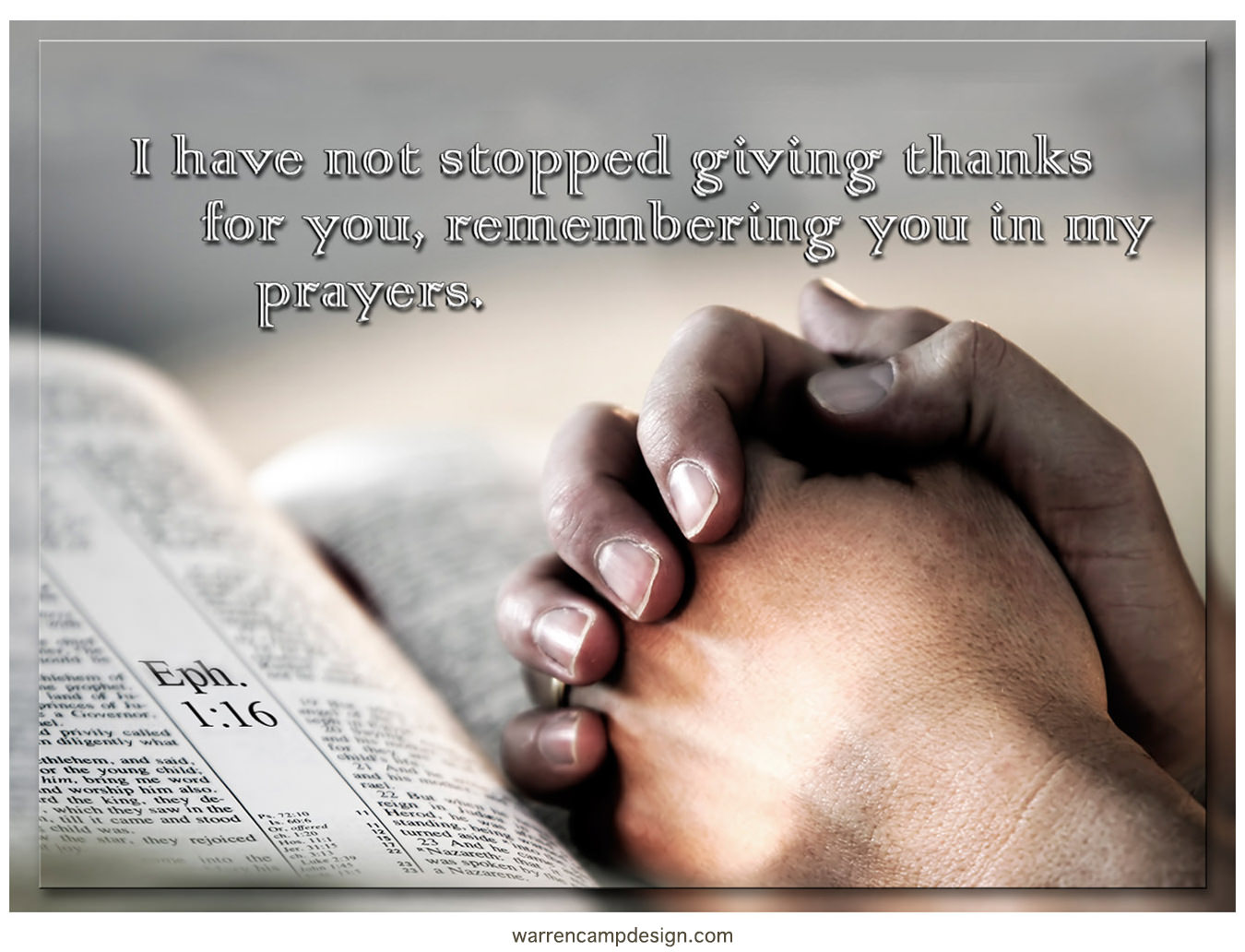 15For this reason, ever since I heard about your faith in the Lord Jesus and your love for all God’s people, 16I have not stopped giving thanks for you, remembering you in my prayers (Ephesians 1:15–16 NIV).