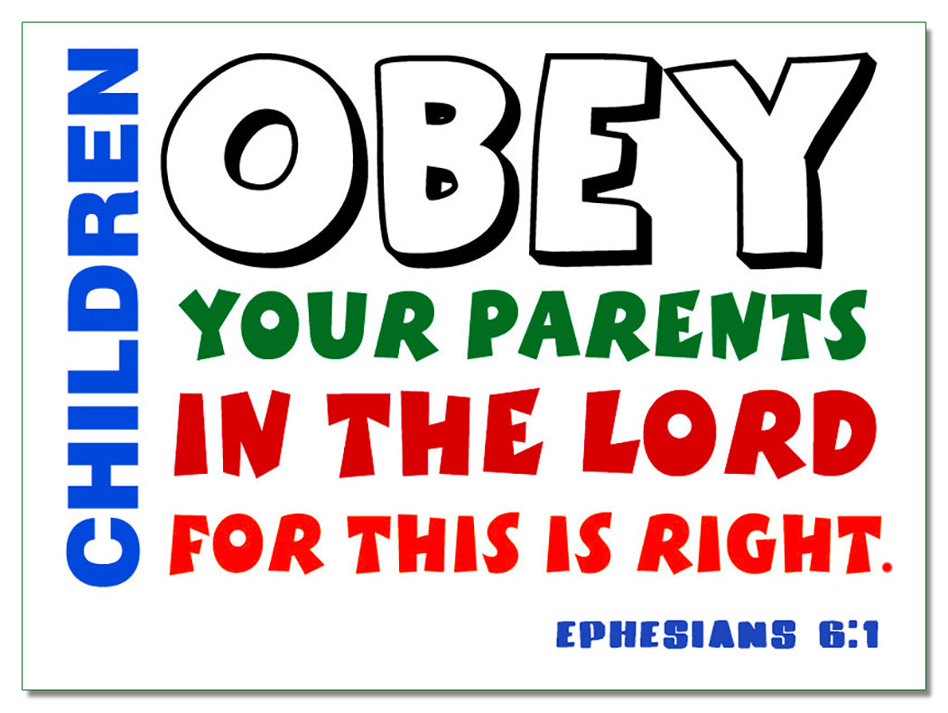 6 1Children, obey your parents in the Lord, for this is right (Ephesians 6:1 NIV).