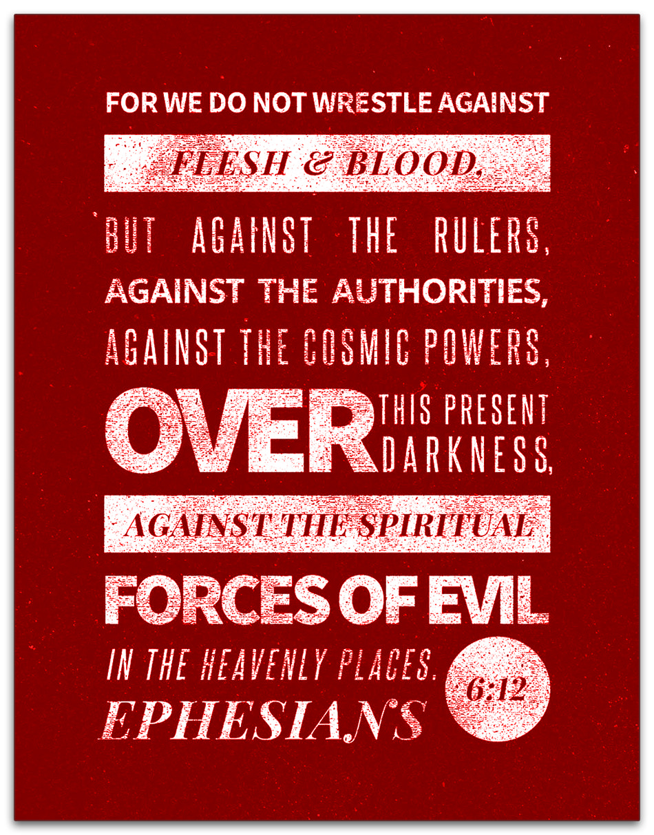 11Put on the full armor of God, so that you can take your stand against the devil’s schemes. 12For our struggle is not against flesh and blood, but against the rulers, against the authorities, against the powers of this dark world and against the spiritual forces of evil in the heavenly realms (Ephesians 6:11–12 NIV).