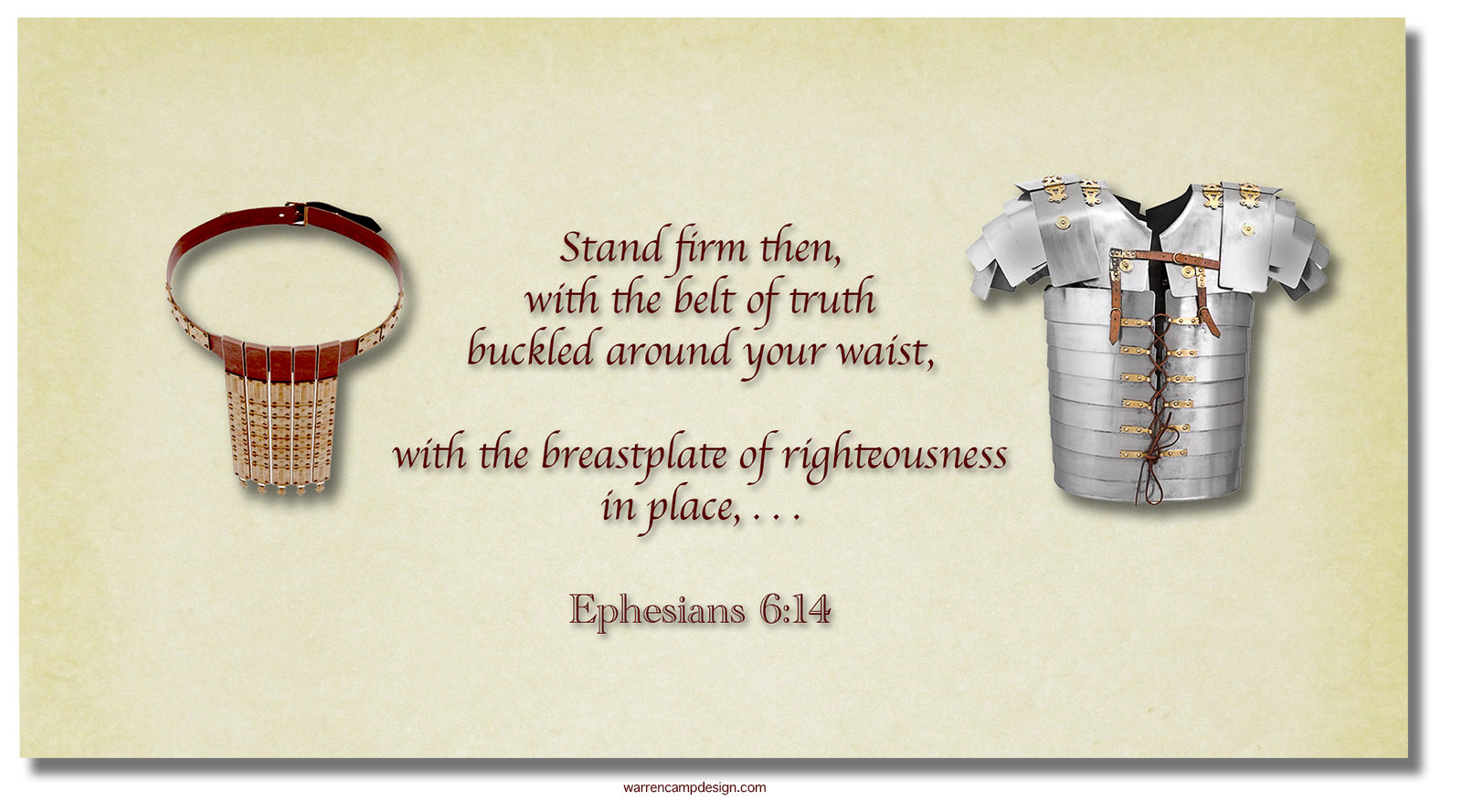 14Stand firm then, with the belt of truth buckled around your waist, with the breastplate of righteousness in place,… (Ephesians 6:14 NIV).