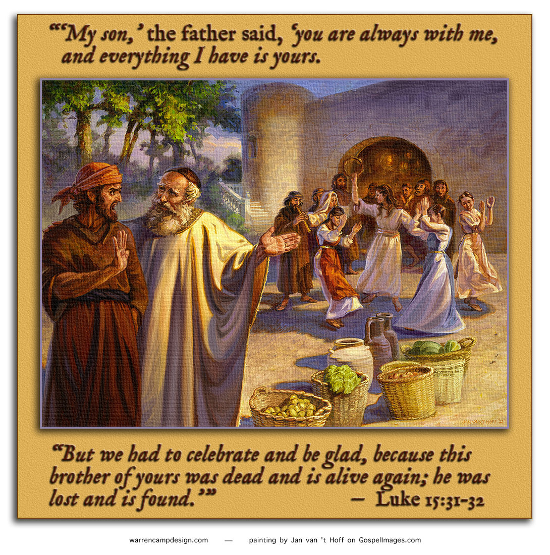 “‘My son,’ the father said, ‘you are always with me, and everything I have is yours. 32But we had to celebrate and be glad, because this brother of yours was dead and is alive again; he was lost and is found’” (vv. 31–32).