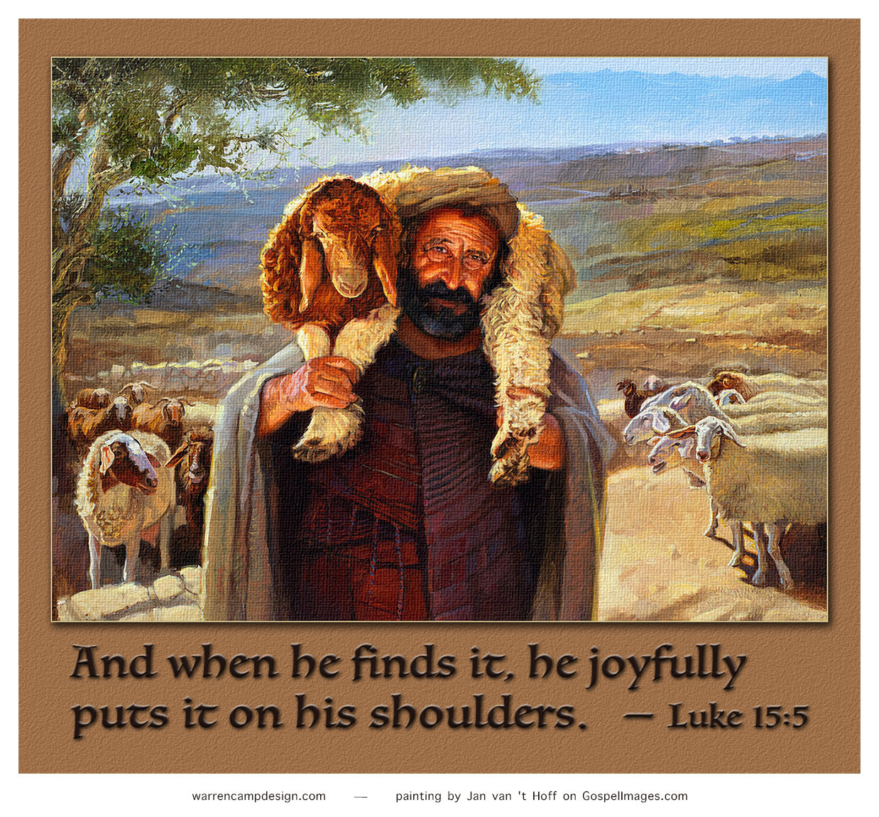 “Suppose one of you has a hundred sheep and loses one of them. Does he not leave the ninety-nine in the open country and go after the lost sheep until he finds it? And when he finds it, he joyfully puts it on his shoulders.” (vv. 4–5)