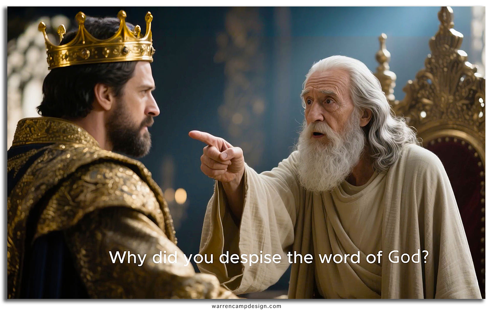 7Then Nathan said to David, “You are the man! This is what the Lord, the God of Israel, says: ‘I anointed you king over Israel, and I delivered you from the hand of Saul. 8I gave your master’s house to you, and your master’s wives into your arms. I gave you all Israel and Judah. And if all this had been too little, I would have given you even more. 9Why did you despise the word of the Lord by doing what is evil in his eyes? You struck down Uriah the Hittite with the sword and took his wife to be your own. You killed him with the sword of the Ammonites” (2 Sam. 12:7–9).