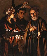 Return to “Peter Masterpieces” album’s opening page or to the top of this page or open the next album. - 25. “The Denial of St Peter,” oil on canvas, painted by Gerrit van Honthorst, c. 1623