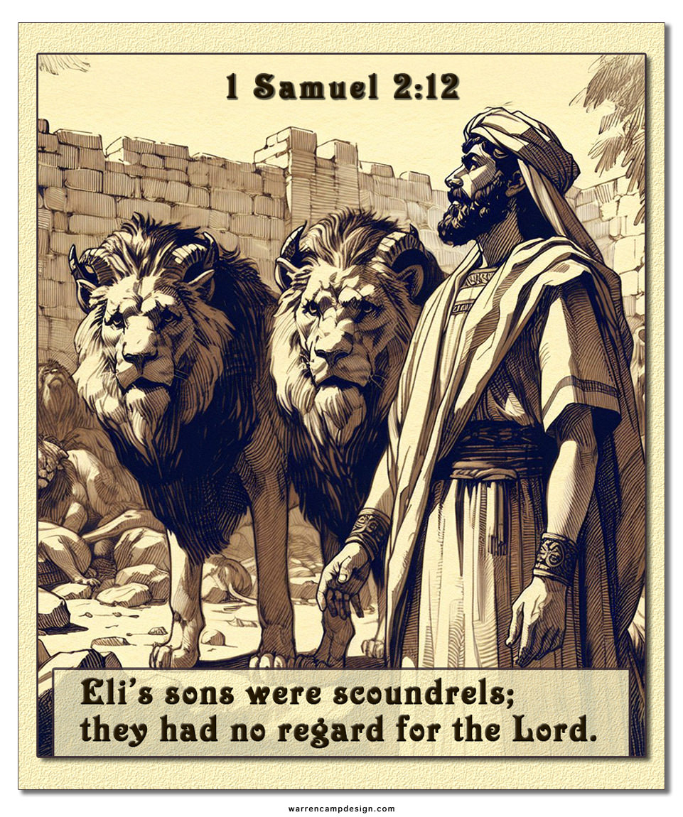 After Samuel is left to minister before the Lord under Eli’s supervision (2:11), the narrative contrasts Samuel’s growth in faithful service with the corrupt behavior of Eli’s sons, Hophni and Phinehas. Described as “worthless men” who didn’t know the Lord (v. 12), these priests abused their office by taking the best portions of sacrifices for themselves (vv. 13–17) and committing sexual immorality with women serving at the tabernacle (v. 22). Though Eli rebuked them, he failed to stop their wickedness (vv. 23–25). Meanwhile, God continued to bless Samuel, who grew in favor with both the Lord and the people (vv. 18, 26).