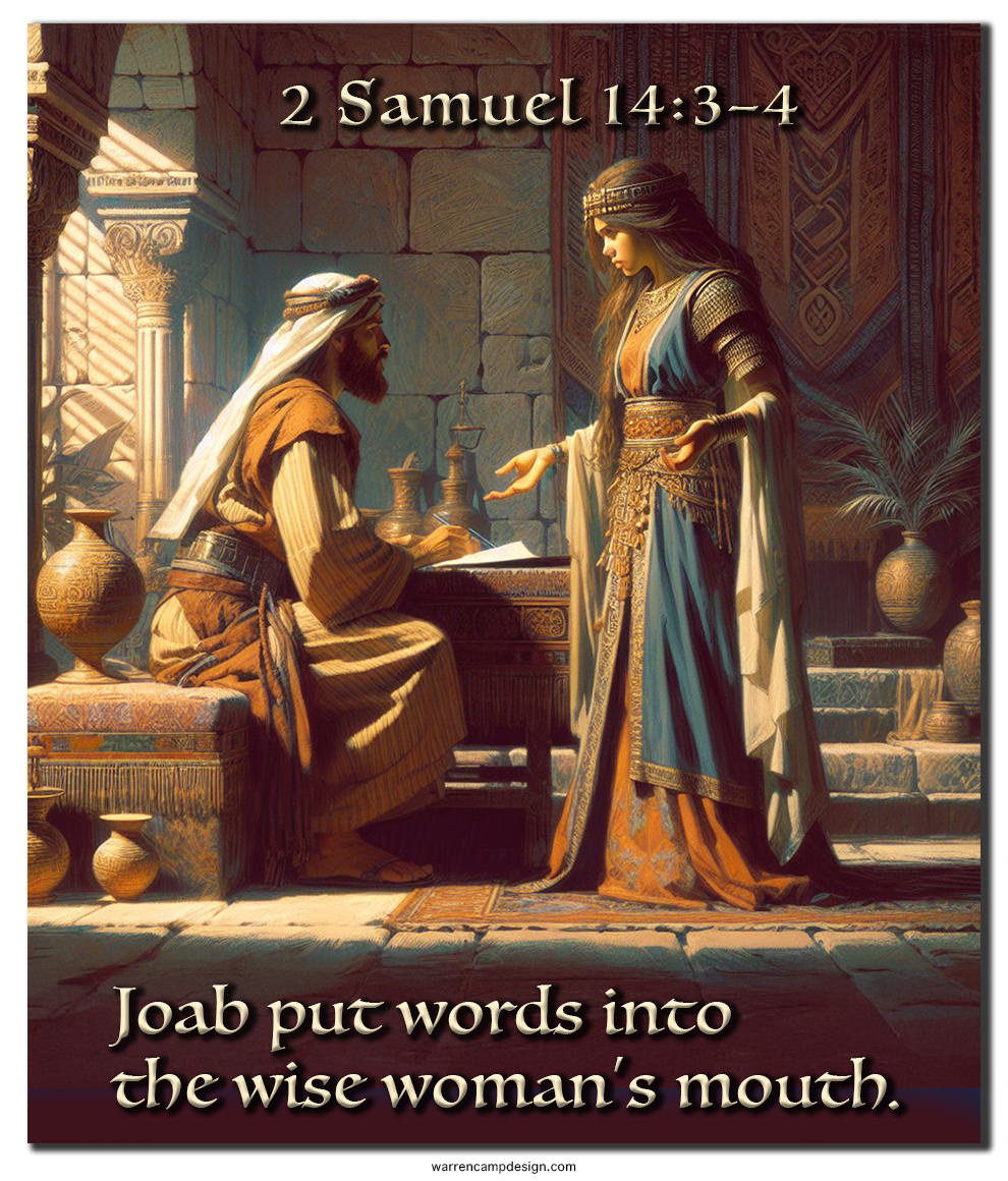 A “wise woman” (v. 2) posed as a widow with two sons, one of whom killed the other. People insisted that the remaining son be killed. David saw injustice in that, but hadn’t yet realized that the story was about him. He’d promise to protect the remaining son.