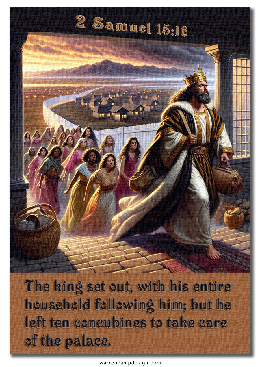 He was leaving town but wasn’t leaving his throne. Absalom might have been able to seize it, but it wouldn’t happen because David had handed him his resignation. The concubines were a symbol of David’s intended continuing reign over Israel. Despite his deep grief and willingness to accept whatever judgment God intended, David’s actions reveal that he hoped and worked toward a restoration to his city and his throne.