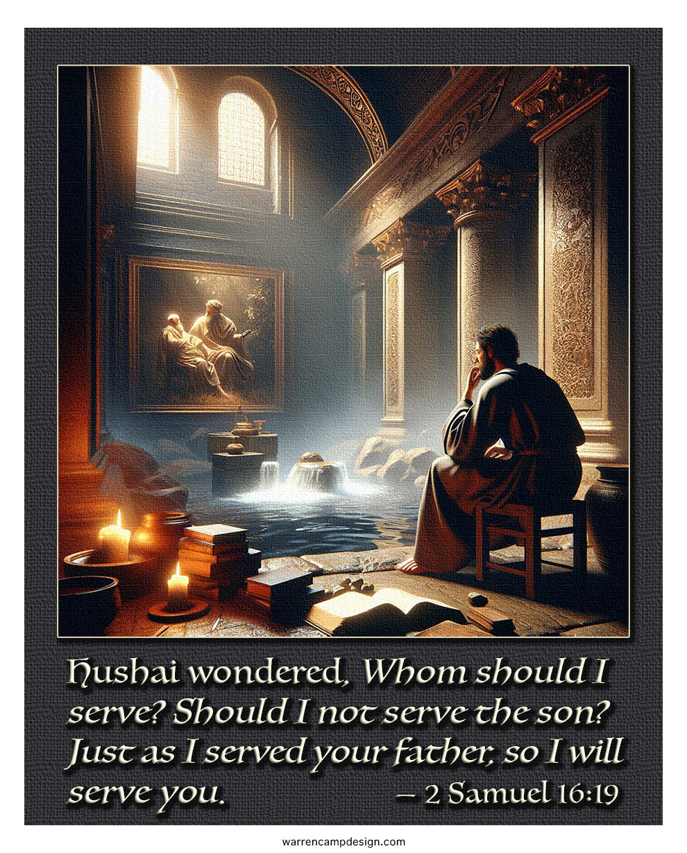 It’s evident that Hushai truly served the reigning, God-appointed king. Absalom wasn’t so sure. He was happy to receive Hushai’s supporting overture, but he wouldn’t include him in his war council so Hushai left that king’s chambers.