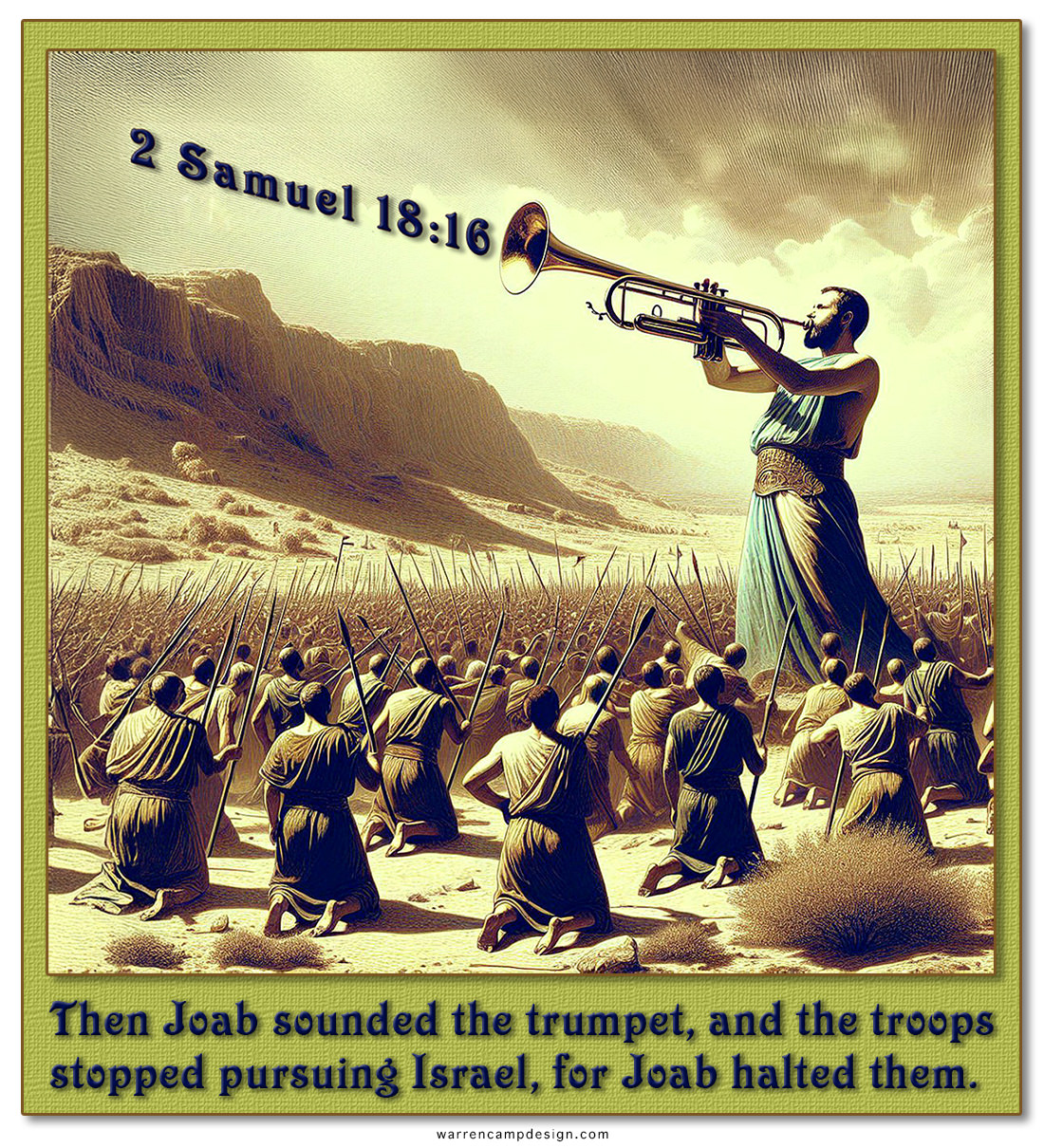 The author doesn’t state whether Absalom was running for his life or not; he seems to have been alone when his mule ran beneath the lower branches of a huge oak tree, somehow causing Absalom’s head of hair to become wedged among the branches. None of his men seem to have been close enough to him to have attempted his rescue; they might have been fleeing for their lives. However, one of Joab’s men came upon Absalom and then mentioned that to his commander who was incensed that this young soldier hadn’t killed Absalom on the spot — would he not have been rewarded for doing so? The young man wasn’t taken aback by Joab’s rebuke. He reminded Joab that David, their commander-in-chief, had specifically forbidden anyone to harm his son, Absalom. No matter what Joab may have promised to do for him, this soldier knew that when David learned that he’d killed his son, there’d be no protection for him. He also knew that while Joab seemingly talked tough, when David’s wrath would be directed toward him for having killed Absalom, Joab would quietly stand by and let the soldier take all the blame. There was no way that this fellow could be directed to disobey the king’s orders by killing the king’s son.