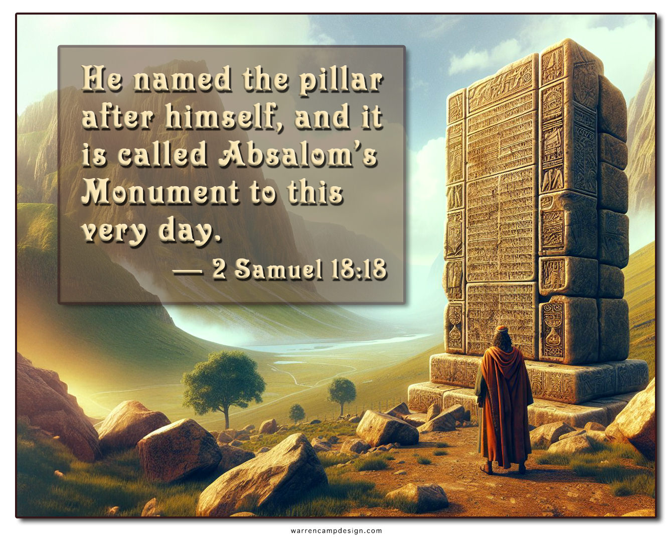 In the ancient world, when a father who was famous died, a son normally erected a memorial to him. Moreover, people also expected the son to imitate his father and thus become a living memorial to his father's name. Absalom failed to receive either form of honor. Absalom lived like Eli’s sons and Saul; he died as they died.