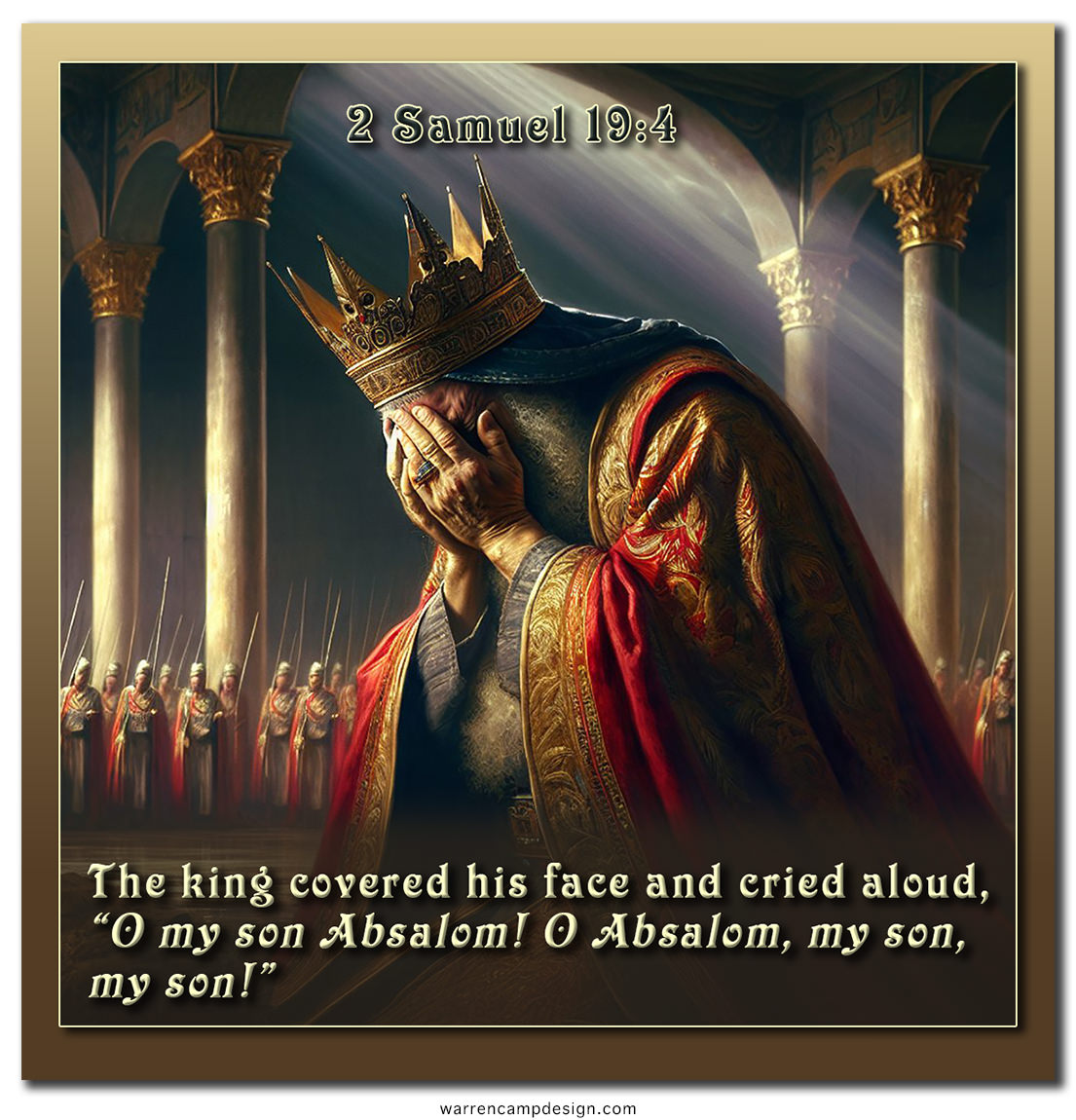 We’ll see in chapter 19 that David, extremely upset about Absalom’s death, will pull himself together and return victorious to Jerusalem, accompanied by the men of Judah. As we learned in last week’s summary of 2 Sam. 18:19–33, Joab knew his king well. He was sure that David wouldn’t take the news of Absalom’s death well, which is why he was reluctant to send Ahimaaz to David with the news of that death. That’s also why Ahimaaz hedged his answer to David’s specific question about Absalom’s well-being. So, when the triumphant soldiers returned to Mahanaim, they didn’t find their king at the gate to greet them and express his appreciation. Instead, they learned that David grieved over his son’s death. Instead of feeling proud of what they’d done in battle, David’s men felt ashamed.