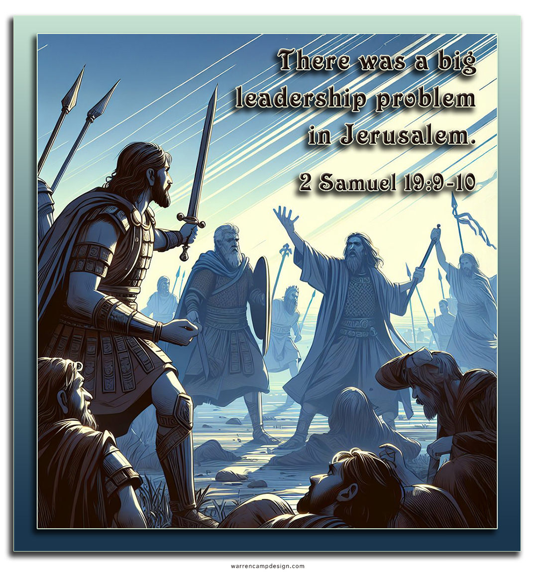 One more fact contributes to having made this such a sticky situation: These people were the same ones who’d backed Absalom’s rebellion. The people who were arguing were the people of Israel, those who’d remained in the land. They weren’t David’s supporters who’d accompanied him into the wilderness. These folks were the ones who rejected him as their king but realized that he’d inevitably reign as king once again. Who’d want to step forward to bring back the man they’d totally rejected, the one against whom they’d committed high treason? The folly of the Israelites’ allegiance to Absalom was clear: It had brought only misery and confusion. They were on the wrong side; they’d rejected their true king; the situation was full of unrest. No wonder there was a leadership problem there.