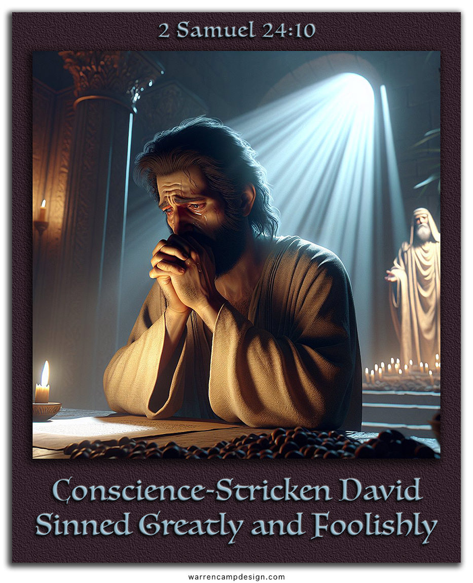 • After the census, David’s conscience convicts him, and he confesses to the LORD that he has sinned greatly (v. 10).